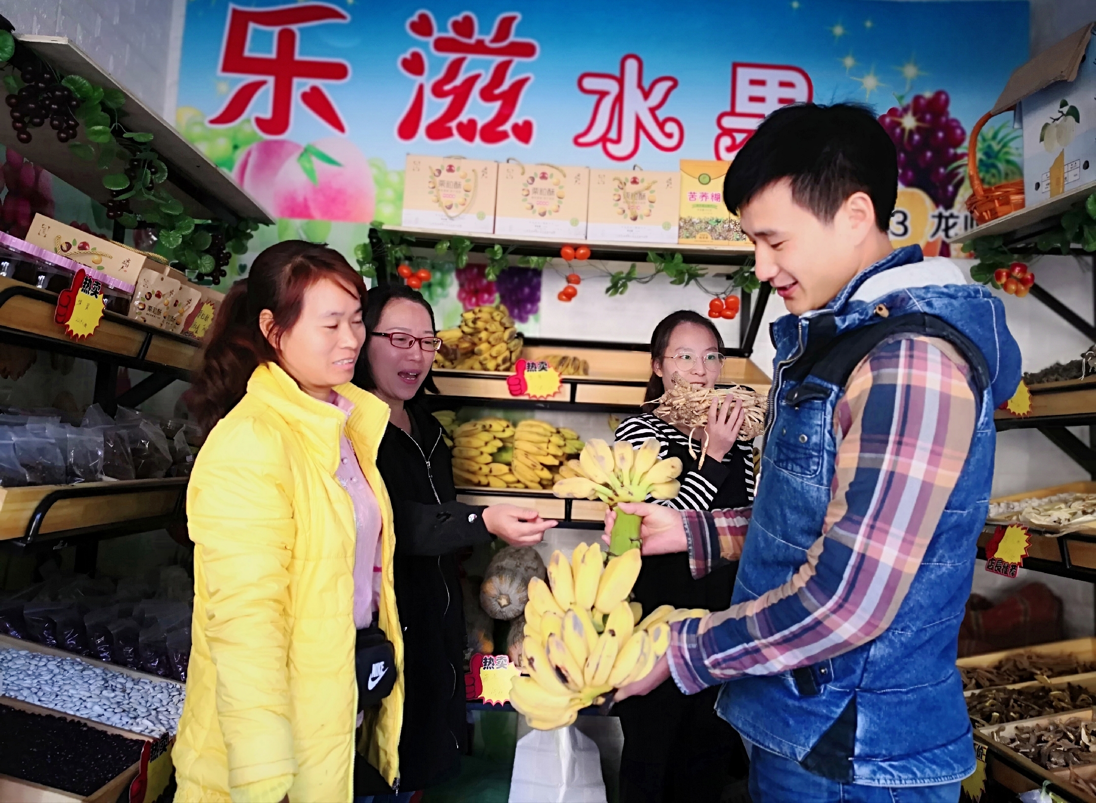 11月5日,西山区盘龙路25号禄品鲜生体验店里,交投公司职工正在购买产自禄劝县雪山乡的农特产品。“今天体验店正式开业,这都是市交投公司支持的结果。以农特产品为核心的栽种、养殖、销售循环产业链,供应着我们‘体验店’里的商品。” 禄品鲜生体验店销售员王英依次介绍着店里的芭蕉、核桃(干)、撒坝火腿等13个品类,绿色生态的优质农特产品备受青睐,帮扶增收在望。