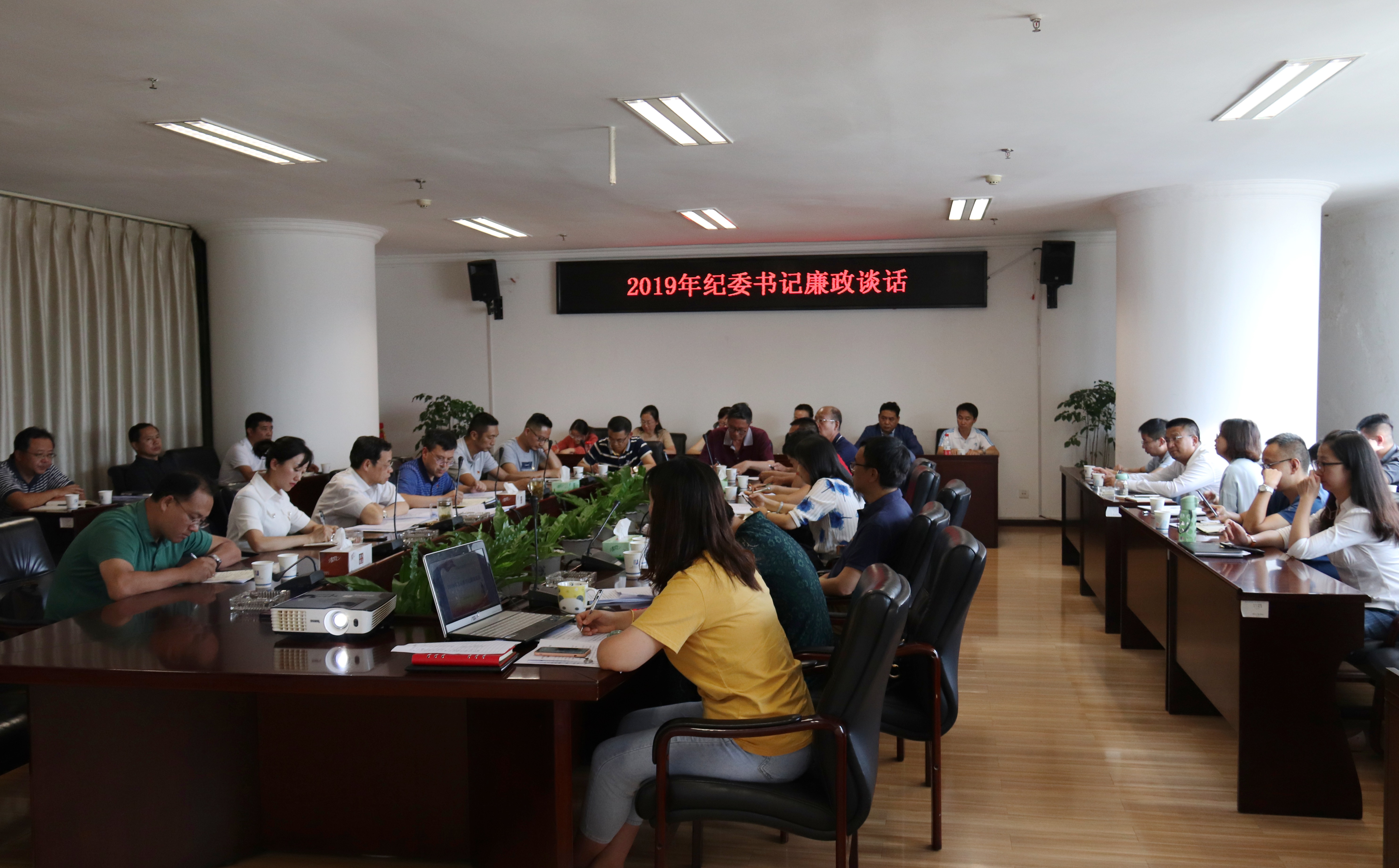 为全面落实从严治党的要求,落实党委主体责任和纪委监督责任,准确把握和运用好“四种形态”第一种形态,让“咬耳扯袖、红脸出汗”成为常态,进一步促进领导干部廉洁自律意识提升,8月14日,公司纪委在407会议室组织开展了2019年纪委书记同部门中层、下属子公司党政主要负责人廉政谈话。纪检监察室、党群工作部及各职能部门中层正、副职管理人员、下属子公司党组织书记和纪委书记、董事长及总经理等共43人参加了集体谈话。