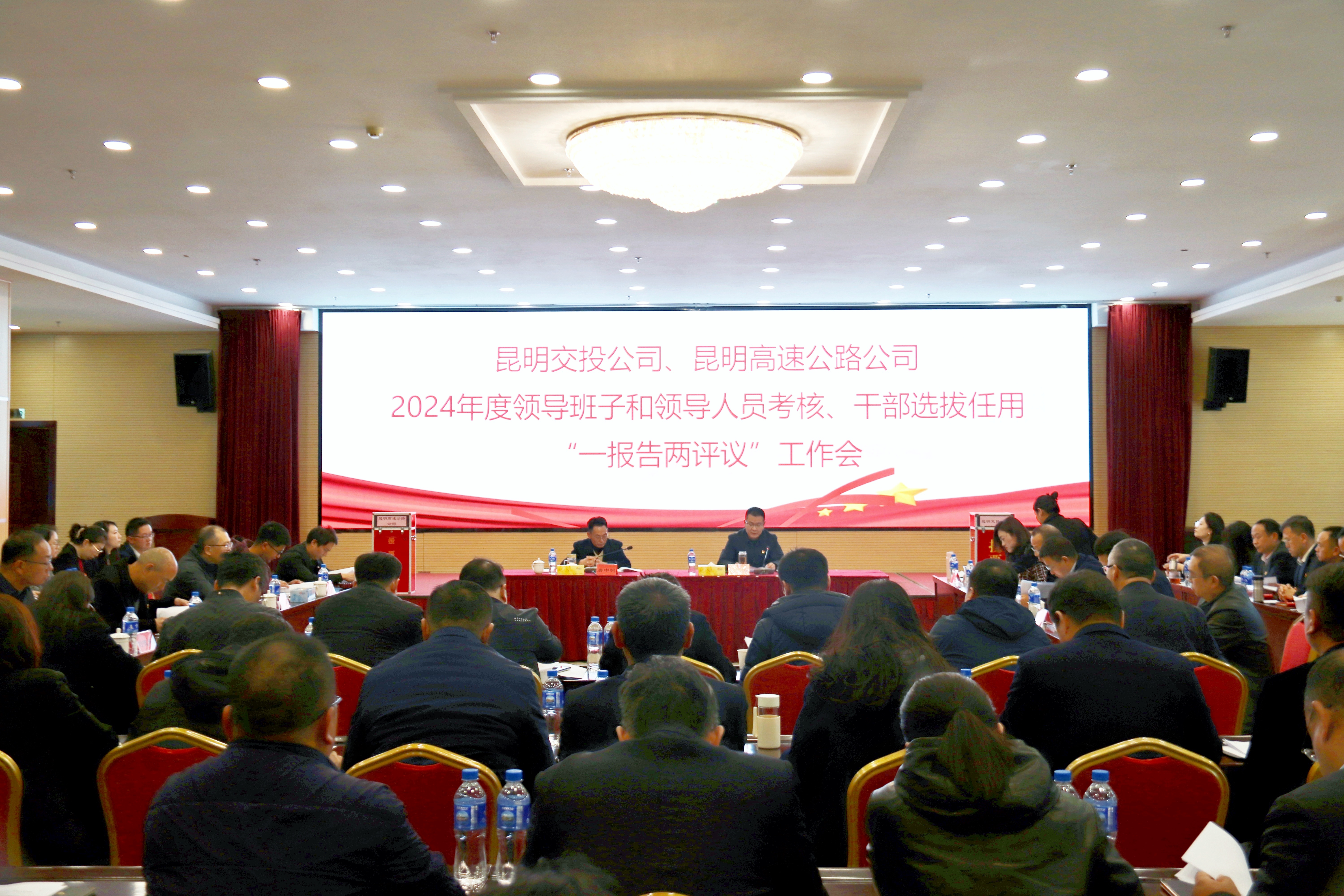 1月23日下午,昆明交投公司在301会议室组织召开2024年度领导班子和领导人员考核、干部选拔任用“一报告两评议”工作会。市委国有企业工委第一考核组组长、市国资委二级调研员唐中明带领考核组成员到会指导。公司党委书记、董事长、总经理马东山主持会议,领导班子成员、监事会成员、本部部门负责人、下属公司党政主要负责人及职工代表50余人出席。